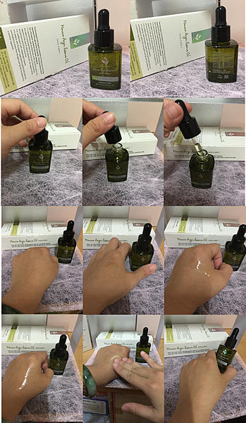剛抹上去的時候有點油,推勻了,就滲透到肌膚了耶!完全不會覺得有油膩感內