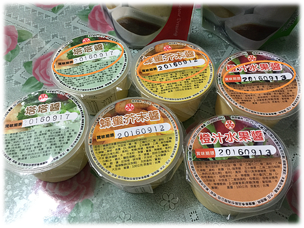 以上準備好了後,最重要的主角就是將將。。。 塔塔醬、橙汁水果醬、蜂蜜芥末醬、 凱撒醬 、