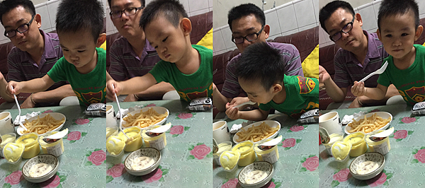 而這幾款沙拉醬不管男女老幼,都喜愛吃內,看富貴仔吃的那麼高興!