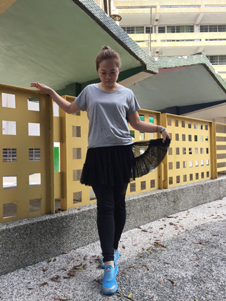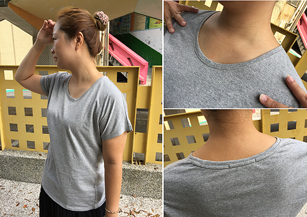 素T下擺是採前短後長,這樣穿起來會略顯有腰身的感覺。