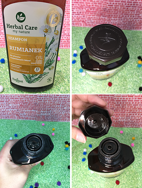 一瓶容量330ml,瓶蓋是特殊的八角螺絲帽樣,此設計讓人在洗髮時因手部濕漉漉後一樣可輕鬆開蓋倒出洗髮乳,而且富貴木個人認為洋甘菊護色植萃調理洗髮露的出洞口不是很大一洞,這樣在倒出時可以取其適量(不會一次倒太多出來喲)。