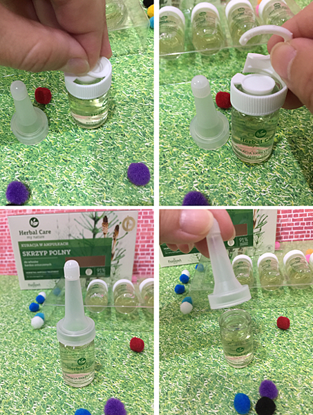 第二步,使用「馬尾草髮絲極亮順強效安瓶護髮素」
