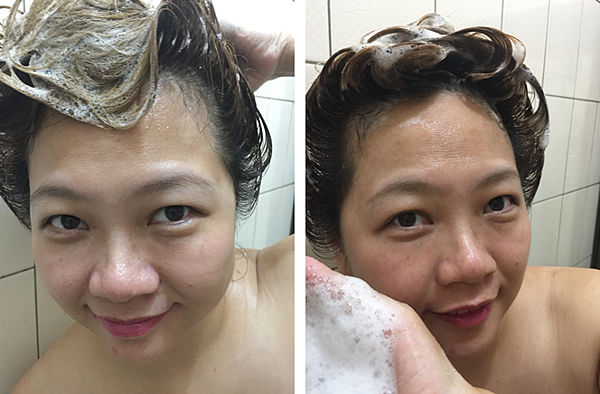 而且在洗的同時,就能感受到修護的效果,因為一般洗髮沖水時,都會發現髮絲糾結在一起梳不開,而洋甘菊護色植萃調理洗髮露卻沒這種情形,在沖水時頭髮很直順,照著水流而下,指尖輕鬆滑過髮絲。