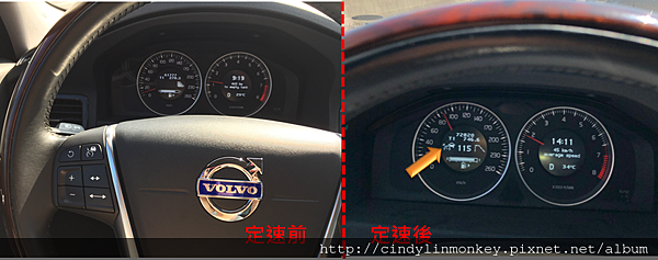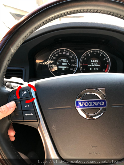 可按+或 - 來增速或減速,而且有自動跟車系統,前方慢速下來,VOLVO S80也跟著減速一定會保持距離。