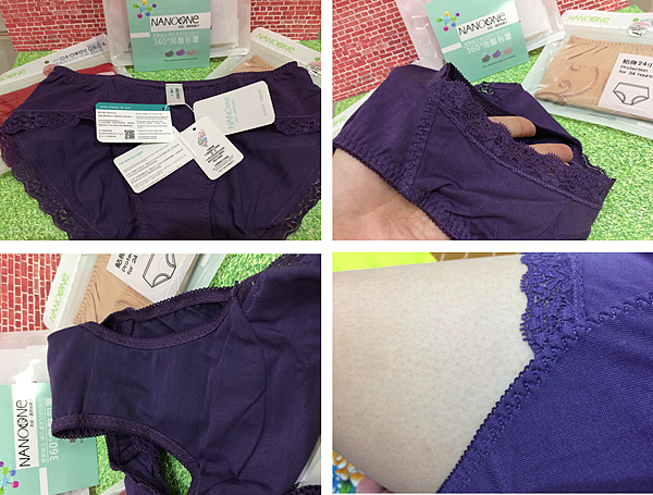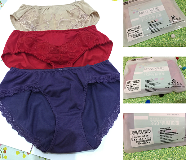 【NANOone】負離子內褲款式有分中腰及低腰,富貴木收到的是中腰,分別三種顏色(紅/紫/膚),每個顏色的蕾絲設計都不同,也讓我深深著迷這高貴不貴的貼身小內褲。