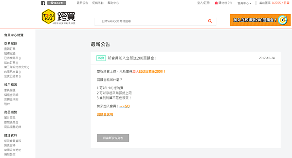 會員中心內也有很多細目可看,「跨買」網站分類超清楚又簡單明瞭。