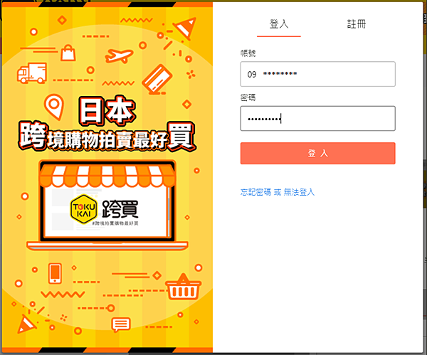 如你不小心登出了,或下次要登入時只要輸入你當初的手機號碼和設定的密碼就可隨時上線到日本去購物囉