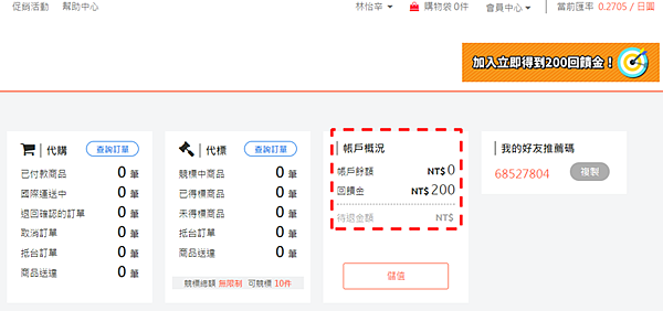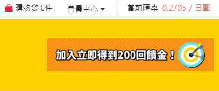 要當個血拚女王就不能不注意到網頁的右上角處有個"加入立即得到200回饋金"