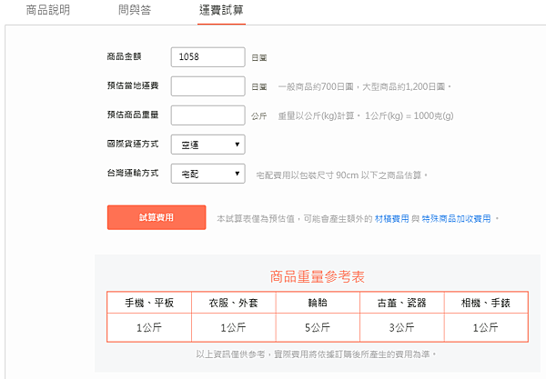 有商品說明和問與答(而且還可中文輸入不用擔心語言不通)及運費試算。