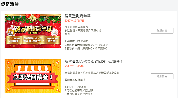 網頁中有這些跑馬燈,讓你看到最新最優惠的活動。