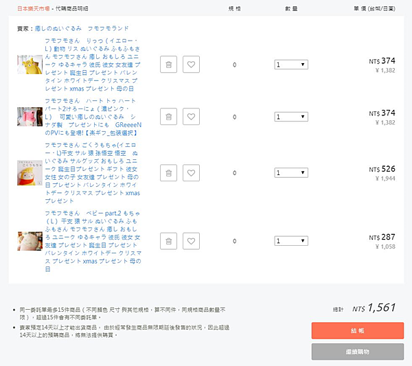 對了,提醒一下,它是用日幣結帳喲!不是用新台幣喲!