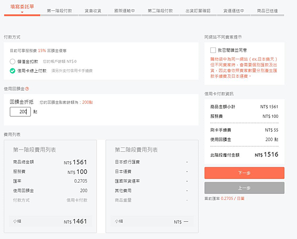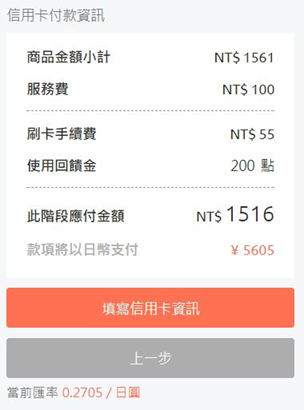 富貴木是選擇信用卡線上付款,且使用回饋金來折扣。