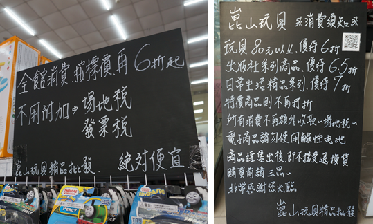 箭頭所指的地方是,「崑山玩具精品-鳳山店」貼心設置"檢修站",如你買的是屬家電類或有裝電池的玩具,都可先在這拆裝檢測是否有無故障喲!