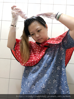 時間到,將染劑溫水沖洗後,洗完頭髮(記得用洗髮精洗),再將護髮素塗抹至全髮,然後在洗完澡就可沖洗掉囉!(富貴木是這麼做的)