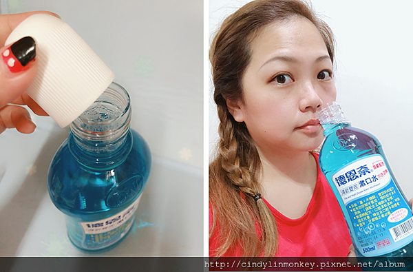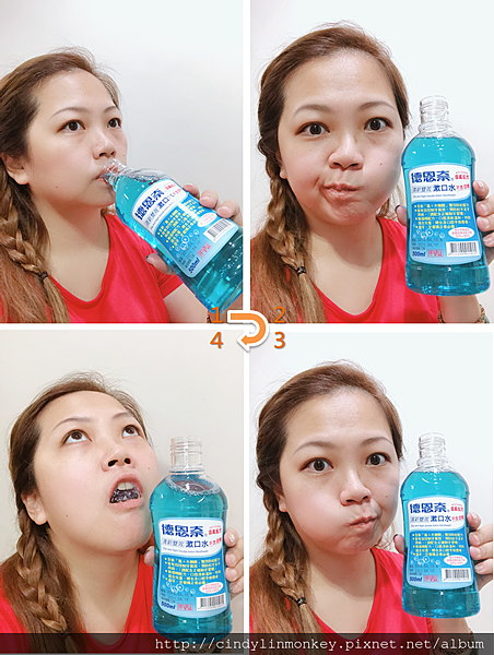 小富貴第一次嚐試德恩奈清新雙效漱口水還很enjoy內彷彿好像在喝好的飲料般忘我。