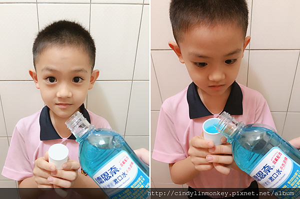 所以當然富貴木要先把自己當白老鼠來實驗是否真的適合兒童用的漱口水啦