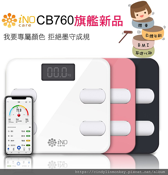 其實iNO藍牙體重計的顏色有白、粉、黑。