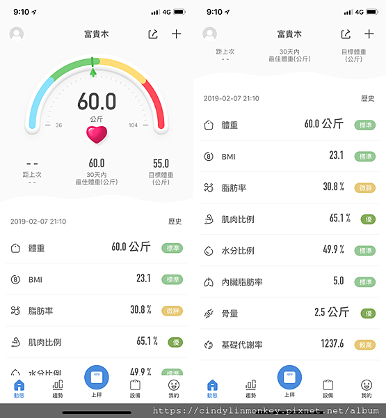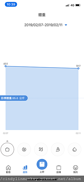 點選[趨勢],可看到APP幫你記錄是否你想達到的目標值喲,可做好體重管理,真是瘦身減肥者的福音呢