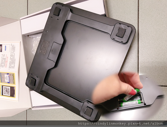 且在四角處那有橡膠防滑墊,讓你平穩站上體重計不滑動,但請記得要量測之前要光腳量喲才能12項指標都量出來喲!